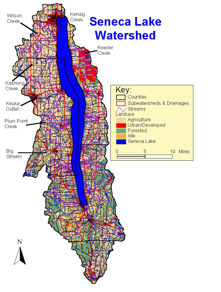 Seneca Lake Landuse, Watershed & Subwatershed Map.