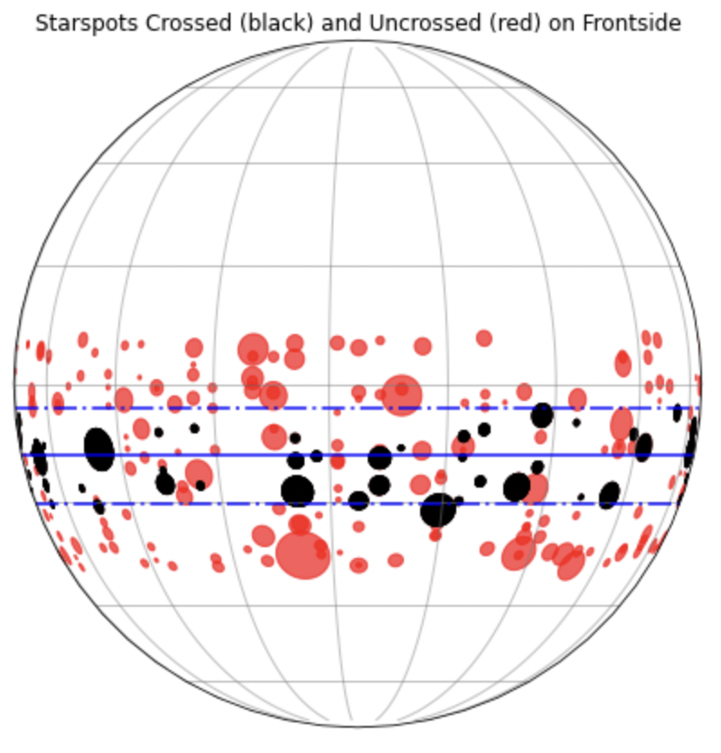 I find that the simulation matches the data at a starspot number of 16, a size of 2.75, and