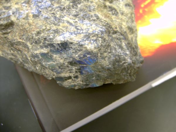 Anorthosite with Labradoritic irridescence. Someday I'm gonna get a countertop made of this stuff.