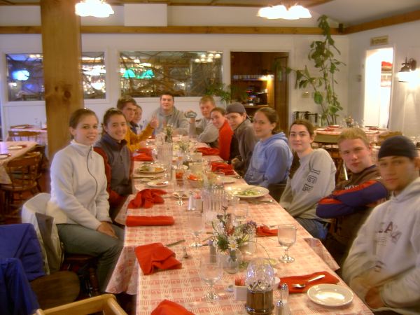 Phew -- after a long, miserably cold and rainy day, we stopped for a welcome dinner. Charlie's steak is STILL sizzling. Listen when he comes by.